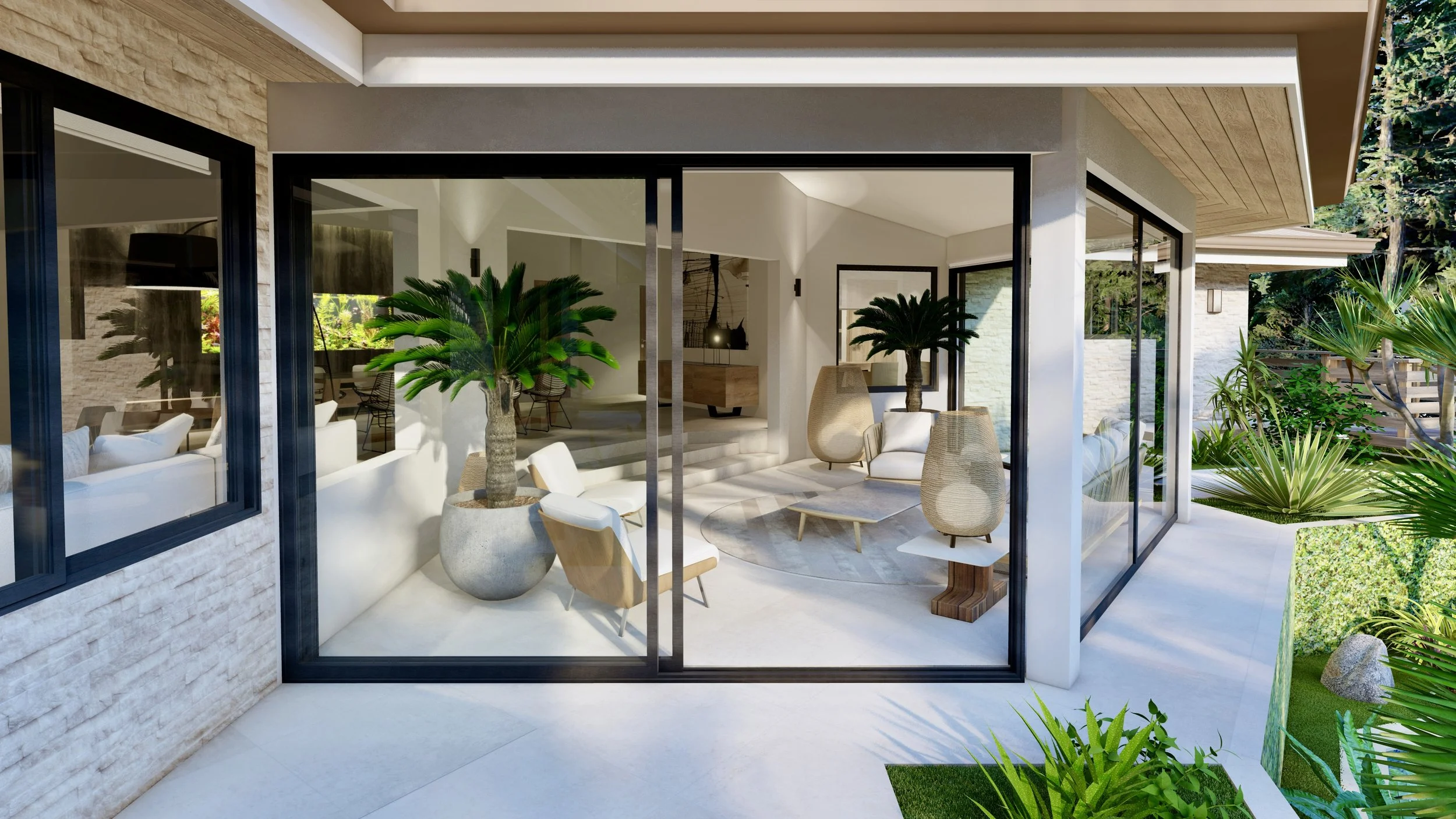 Chaque projet est pensé comme une expérience de vie : des volumes ouverts, un dialogue constant entre intérieur et extérieur, des matériaux nobles qui dialoguent avec la végétation et la lumière naturelle.