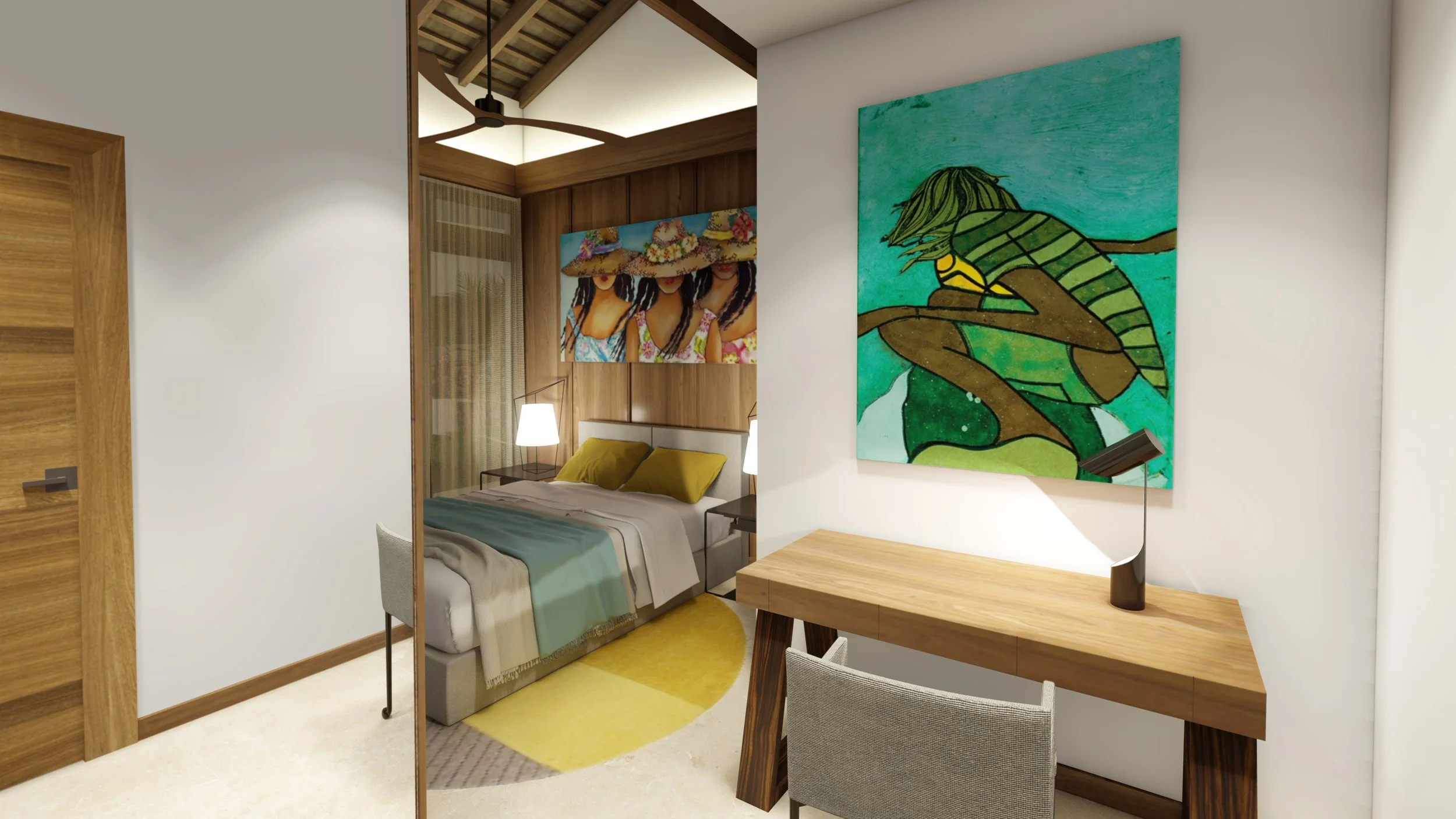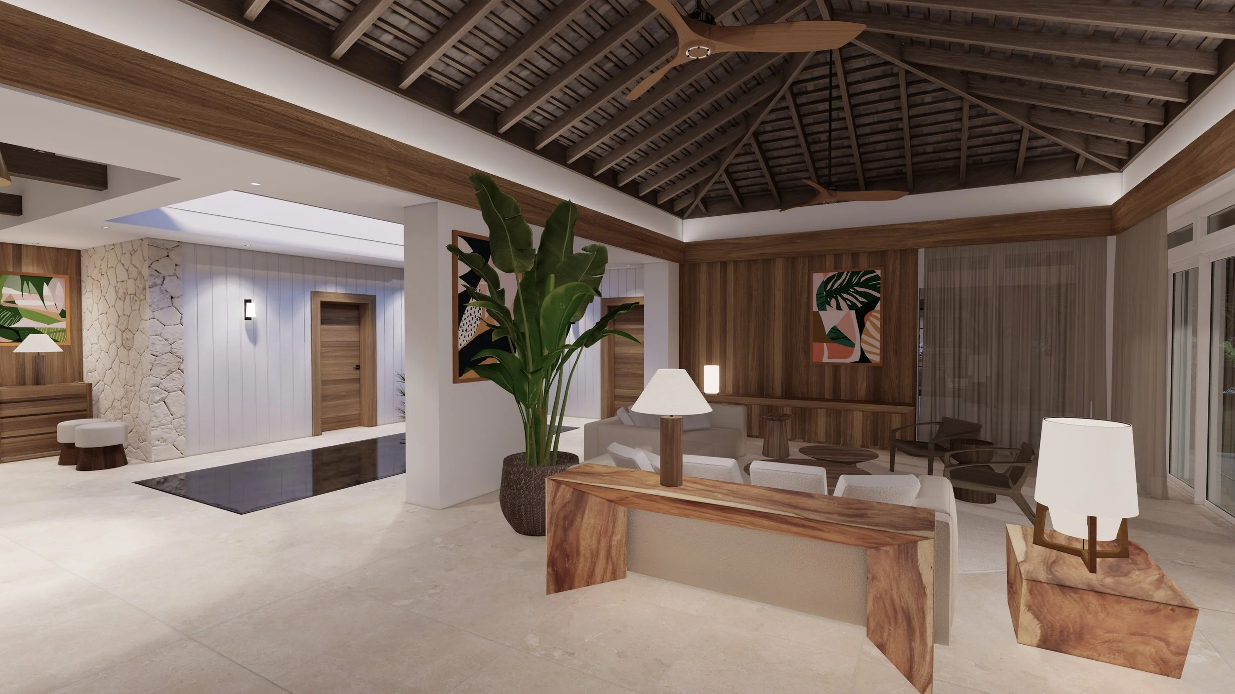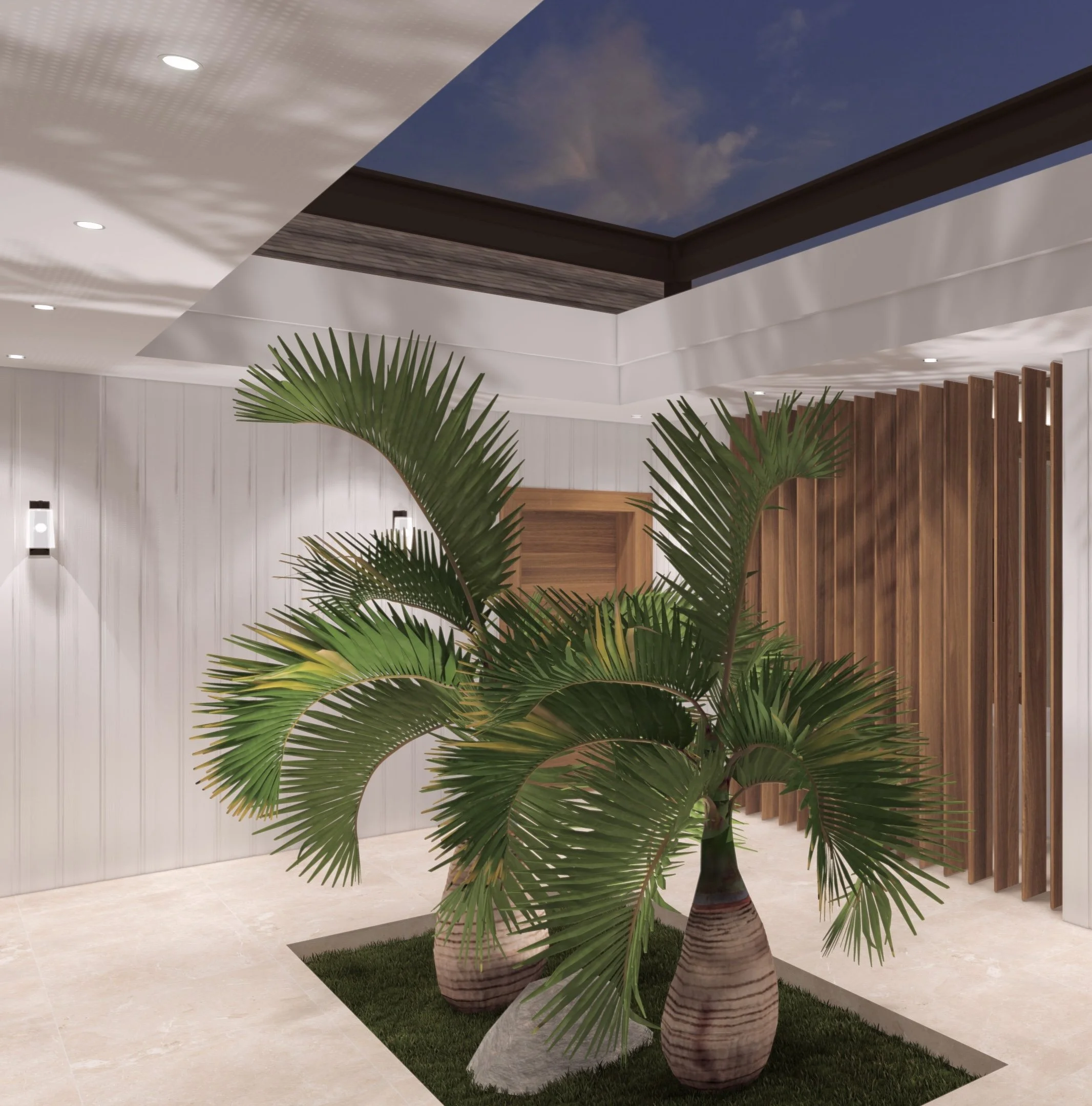 C’est une maison pensée comme une expérience de vie tropicale : élégante, épurée, confortable, où chaque détail - du dessin du mobilier à l’intégration des œuvres décoratives - contribue à une atmosphère de sérénité contemporaine.