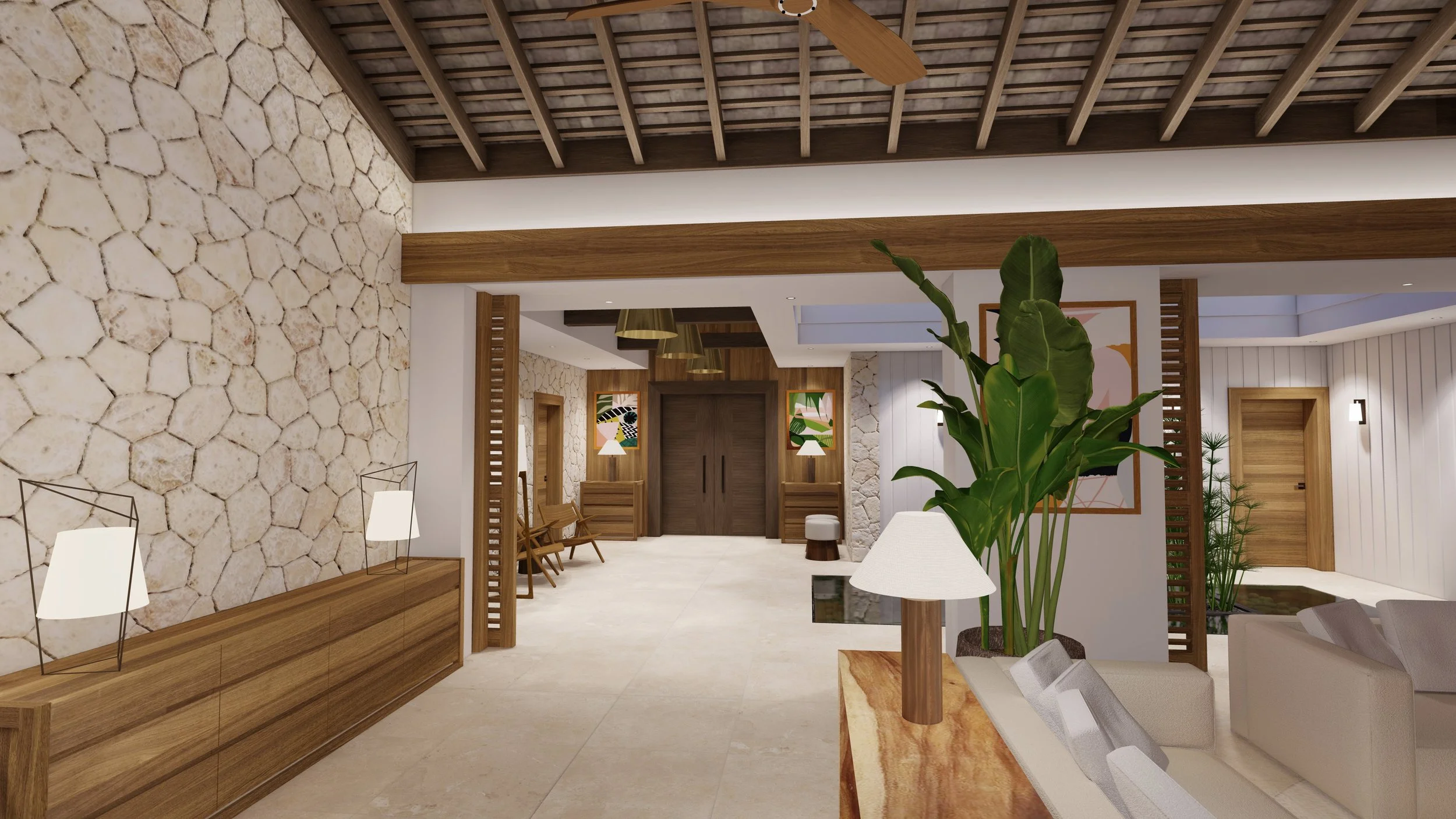 Notre signature naît de l’alliance subtile entre lignes contemporaines épurées, matières naturelles et inspirations tropicales.