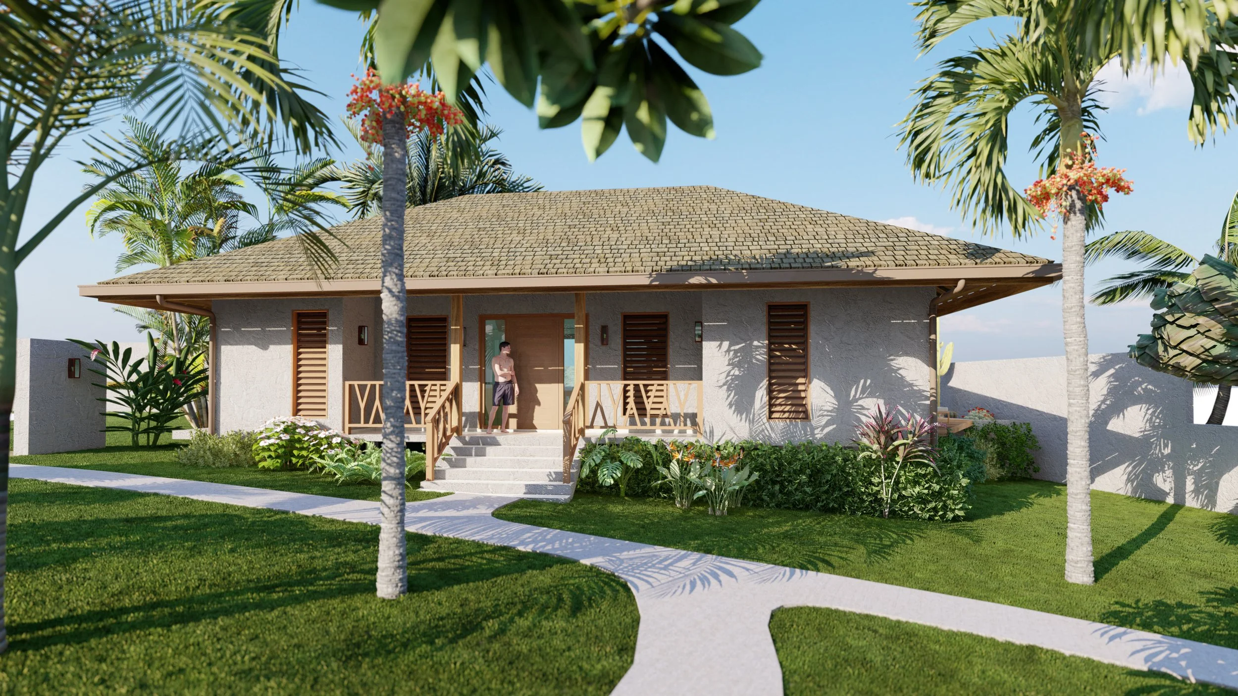 Cette petite maison de plage conjugue authenticité et confort moderne. Son architecture s’inspire des codes traditionnels polynésiens - toiture à claire-voie, bois naturel, ventilation traversante - tout en intégrant des aménagements contemporains.
